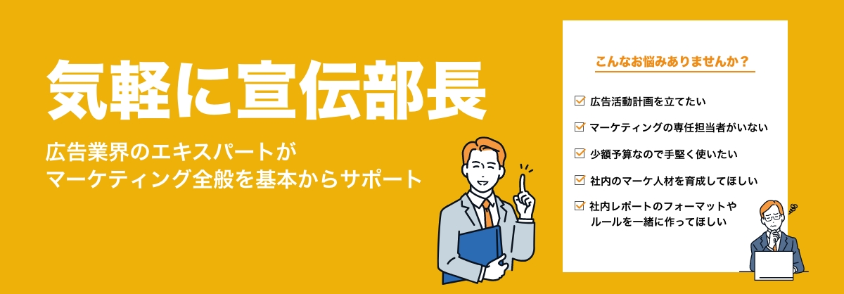 外部からサポートする“宣伝部長”として、貴社の課題を解決いたします